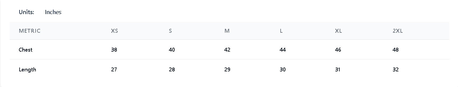 TEES Size ChartNOTE: Sizes may vary up to +/- 0.5 inches